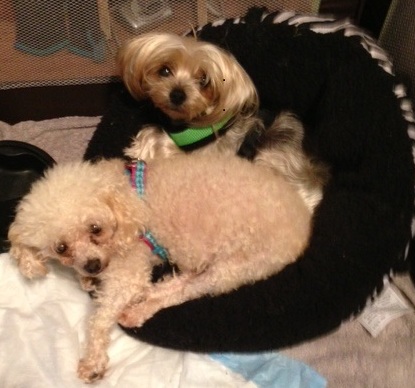 As for personality, Candy is just a love sponge. She would do well in a house with or without another dog. She does not seem to mind but she lives for the human cuddle time. She will endure the other dogs checking her out if it means she gets to hang out with you. She looks to please – on walks she will walk a bit and then look at you to tell her she is a good girl if she does her business outside. Candy is pictured here with her foster buddy Cheyenne; they are content when you are out and they are in the play pen together but she loves to be close as much as she can. She loves to snuggle and sit with you on the sofa or at your feet.